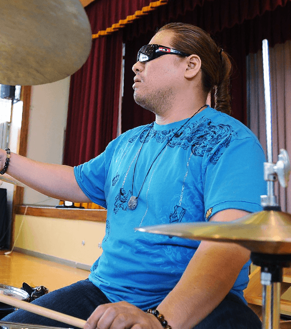 視覚障害当事者でありフリーのミュージシャン(ドラマー)として、講師業、演奏活動を都内を中心に行っている。